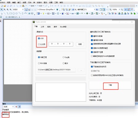 1.觸摸屏接通電源,軟件內點擊“下載”,等待編譯完成