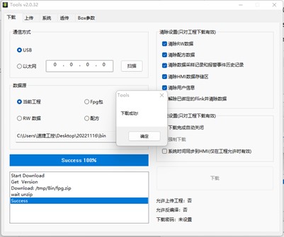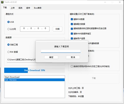 3、選擇工程下載方式,USB 或者網絡,確認下載,如果提示“通訊失敗”,請檢查下載線連接是否 正常(USB 線或者網線),如果提示“啟動下位機失敗”,可以先斷電,讓 HMI 重啟,再次嘗試。(百度一下速捷工控)