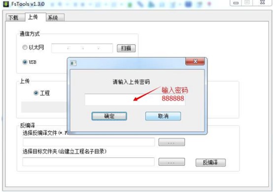 2、輸入正確的上傳密碼,默認為”888888“,如果默認上傳密碼被修改會提示密碼錯誤,或者提示禁止上傳就需要專業人員進行解密了,有需要可以聯系我們(百度一下速捷工控)