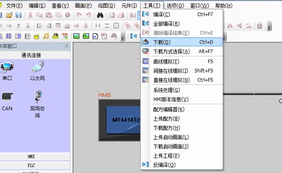 2. 編譯完成后,工具菜單中點(diǎn)擊“下載”(百度一下速捷工控)